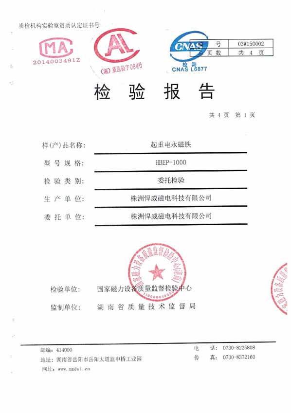 起重電永磁鐵檢測(cè)報(bào)告