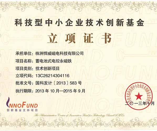 創(chuàng)新基金立項(xiàng)證書(shū)