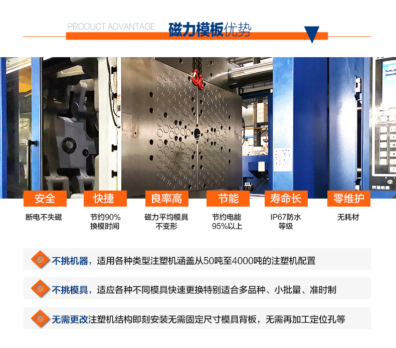 接下來,以磁力模板快速換模系統為例。 讓我們一起理解,注塑機快速換模系統的必要性主要體現在管理的便利性上,生產安全,減少人員和效率: